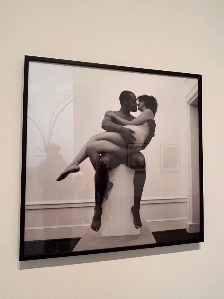 The Kiss is referencing Rodin’s famous sculpture from 1882. Incorporating non-white bodies into the art history canon, the artist is posing with Christian Haye, founder of The Project Gallery in Harlem.